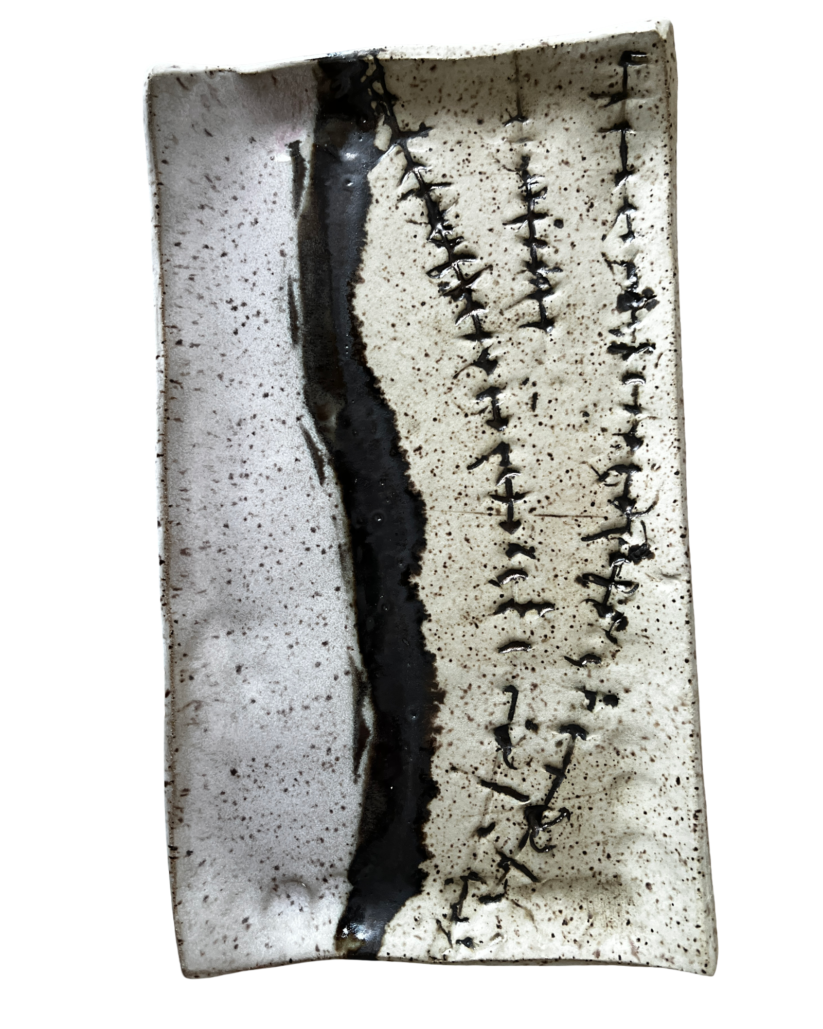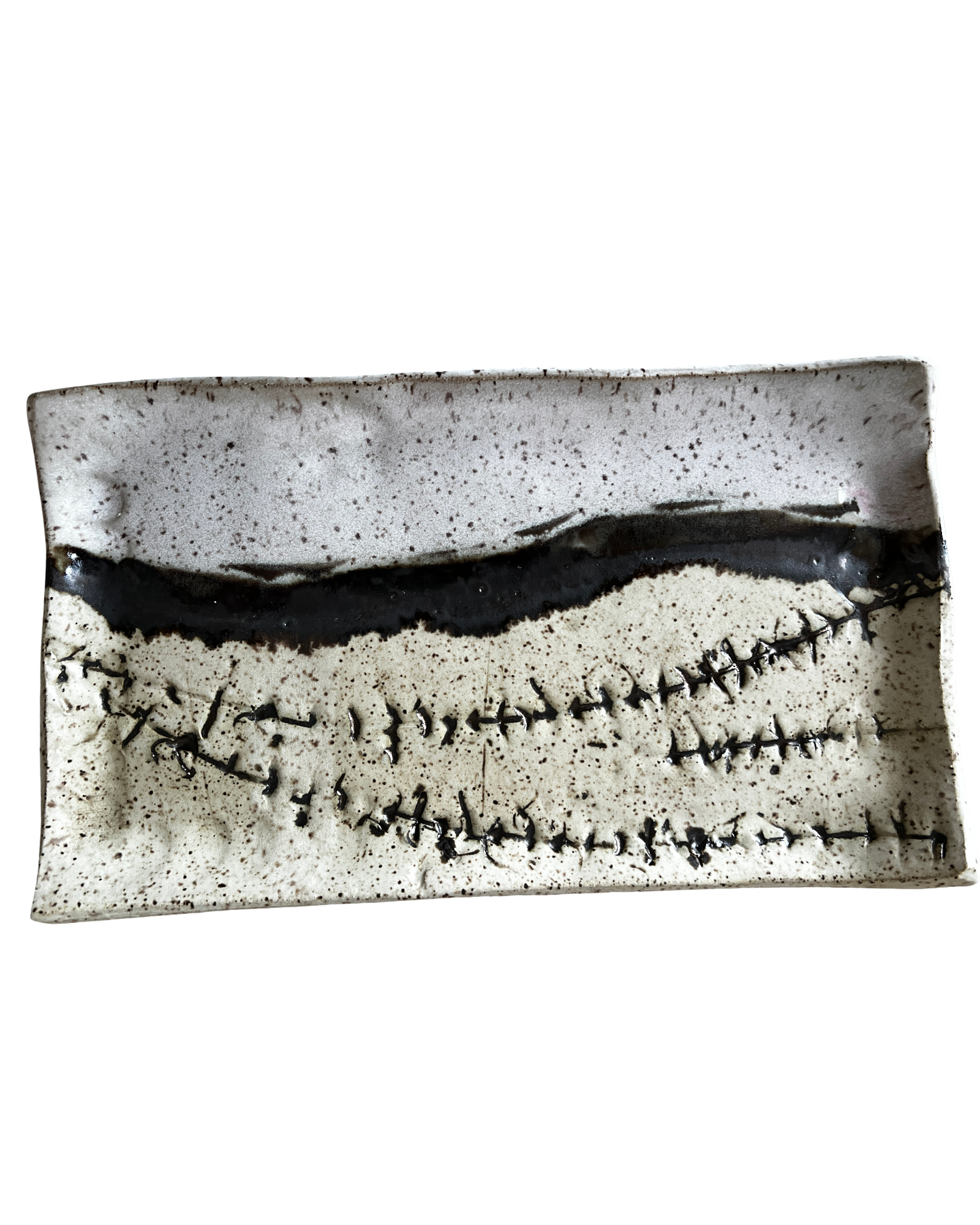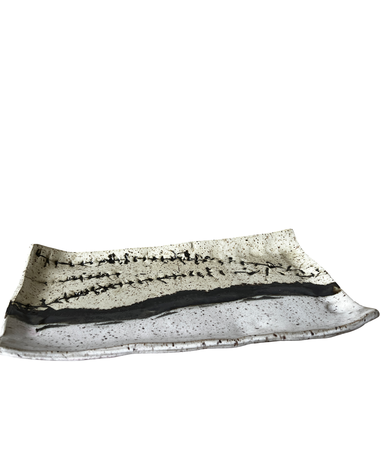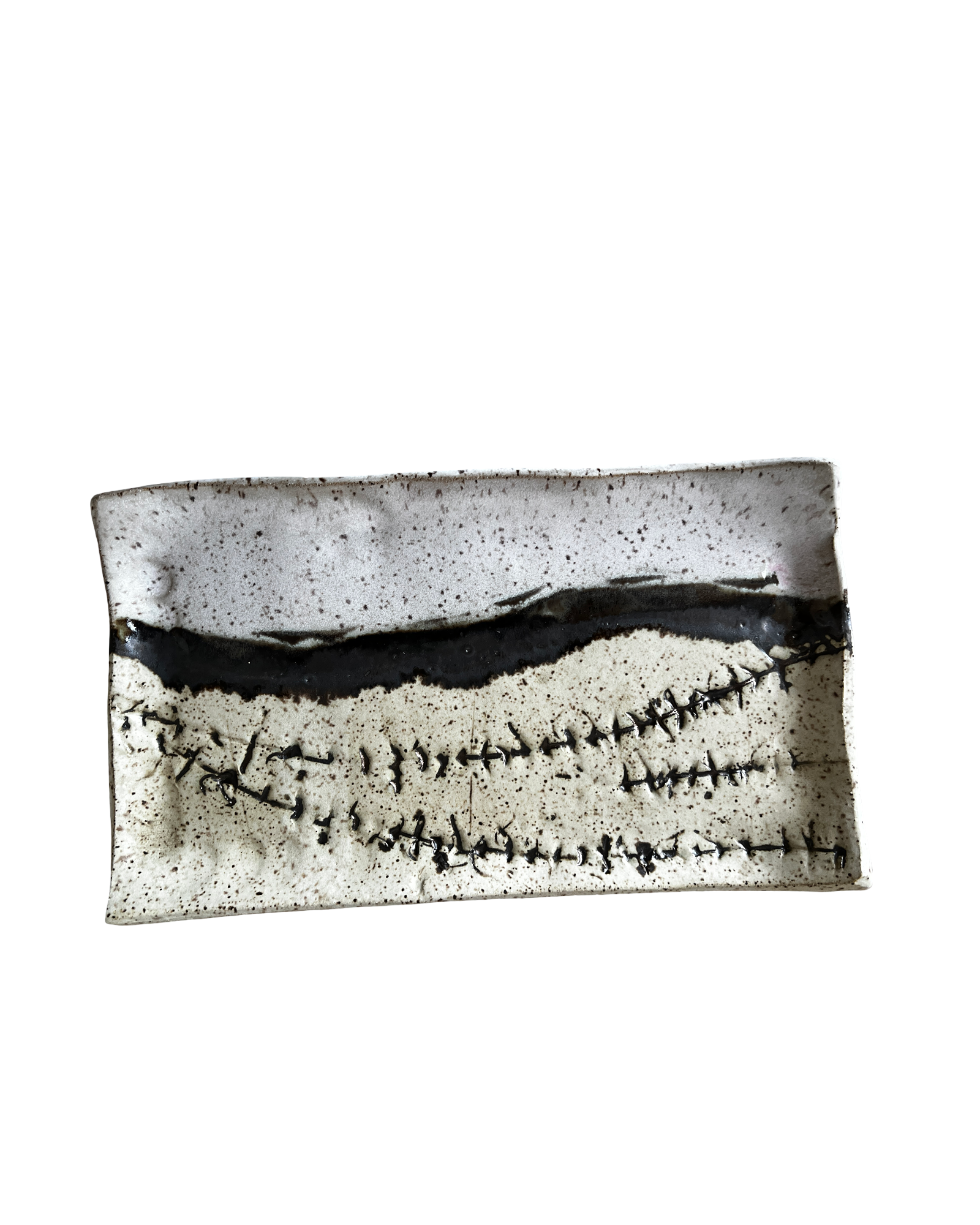 Part of the Borealis collection, this singular ceramic tray combines functional design with artistic craftsmanship. Hand-pressed caning creates textural depth across the speckled brown stoneware surface, while the layered white, sand and bronze glaze vary based on the texture. At 12 by 7 inches, it is the perfect serving dish. Dishwasher safe for everyday practicality.
