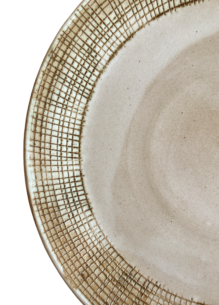 Large Ceramic Serving Platter in Beige and Bronze