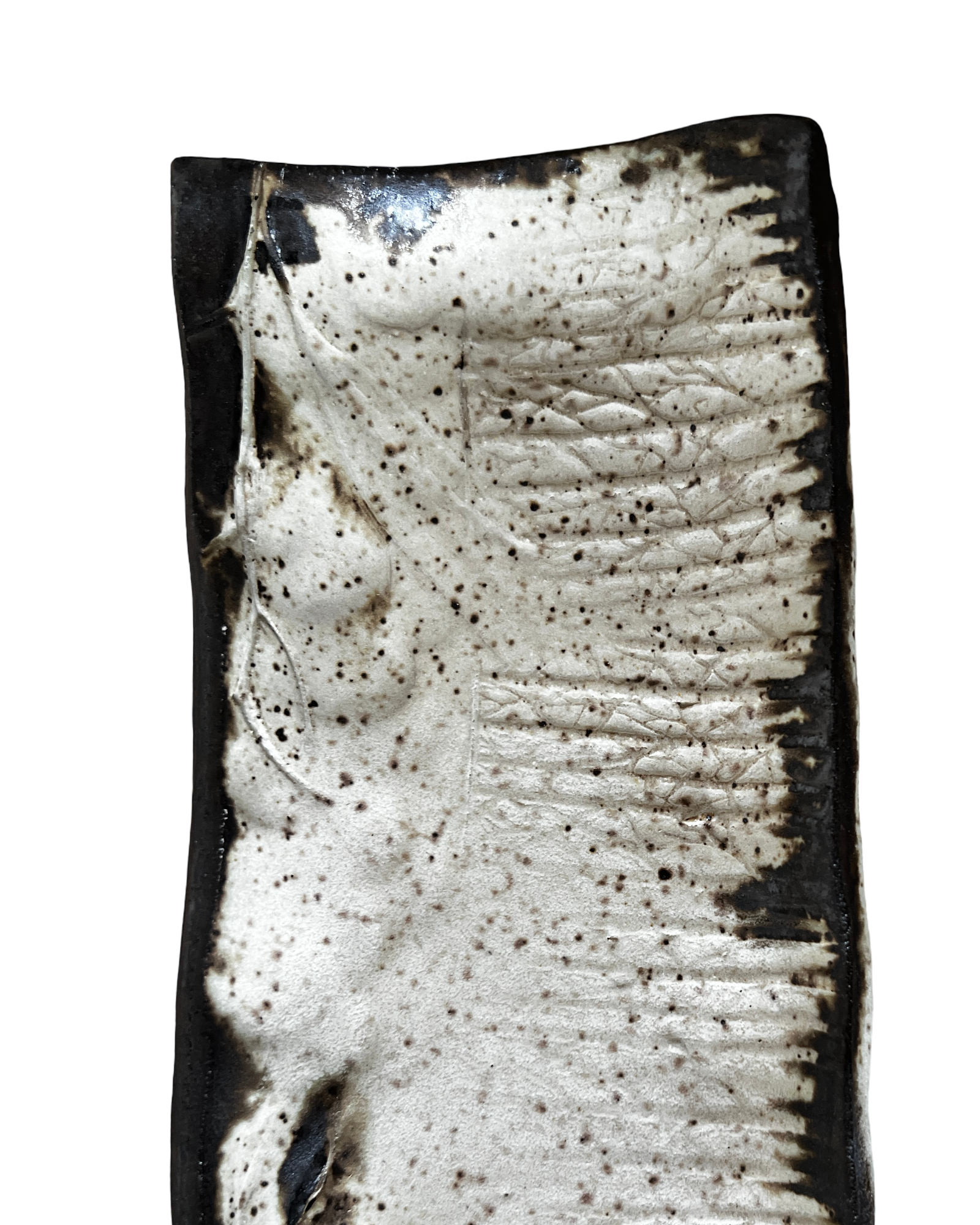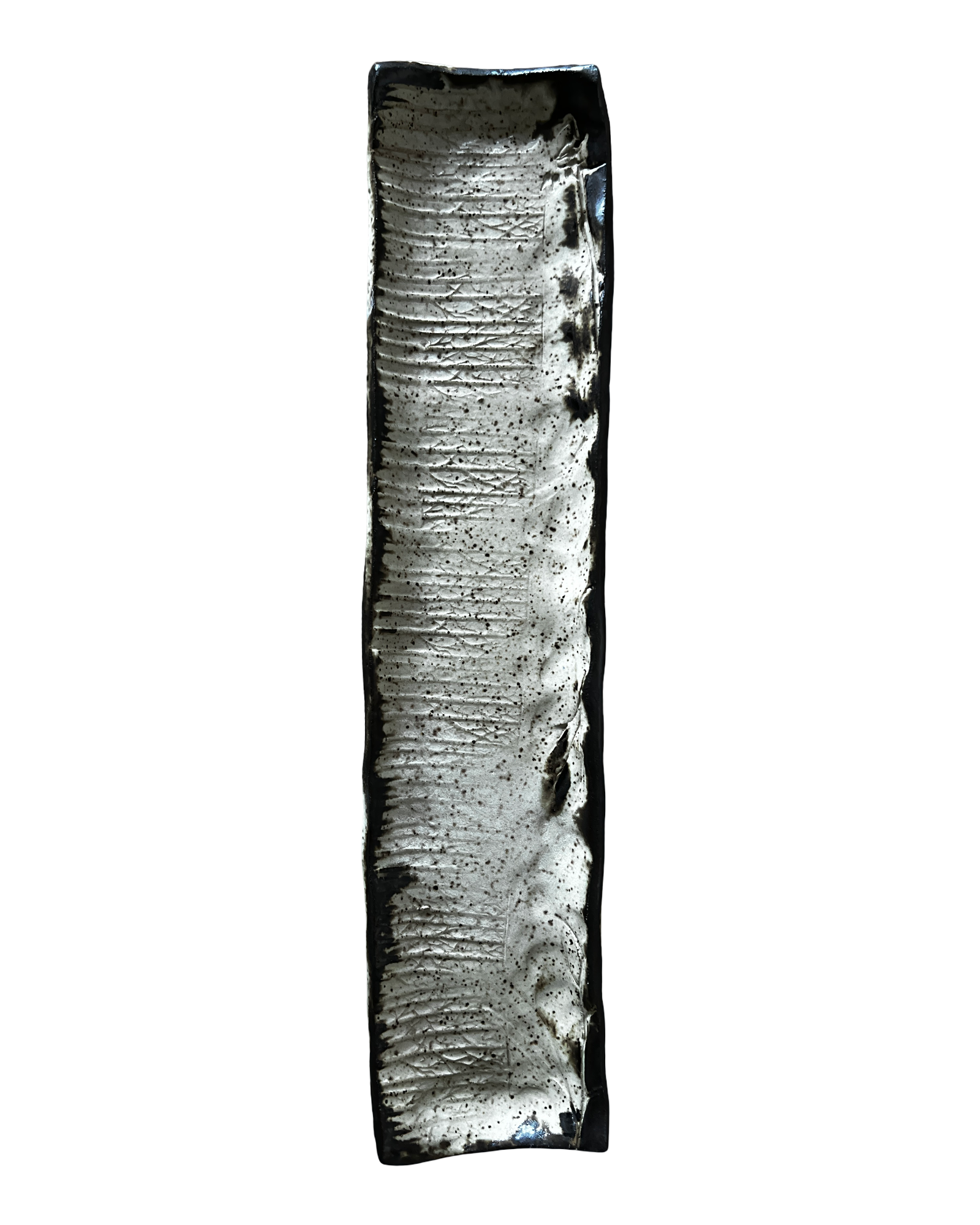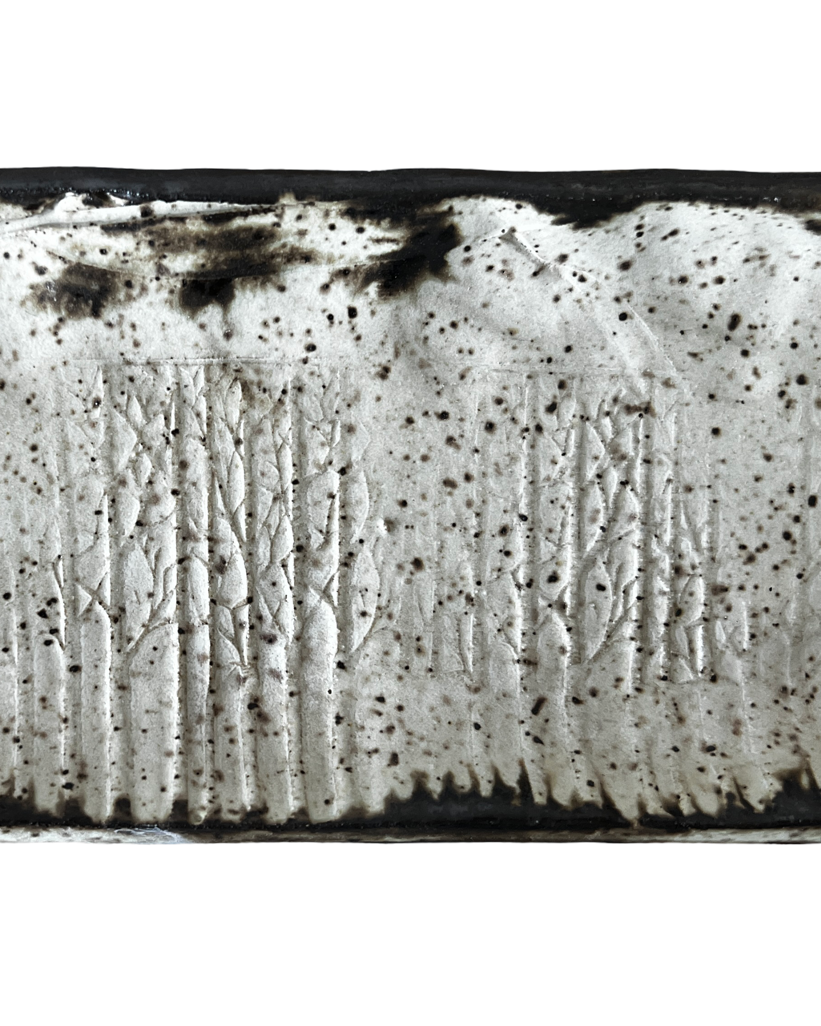 Part of the Luna collection, this singular ceramic tray combines functional design with artistic craftsmanship. Hand-pressed caning creates textural depth across the speckled brown stoneware surface, while the layered pink, white, sand and bronze glaze vary based on the texture. At 14 by 3 inches, it is the perfect serving dish for olives and charcuterie. Dishwasher safe for everyday practicality.