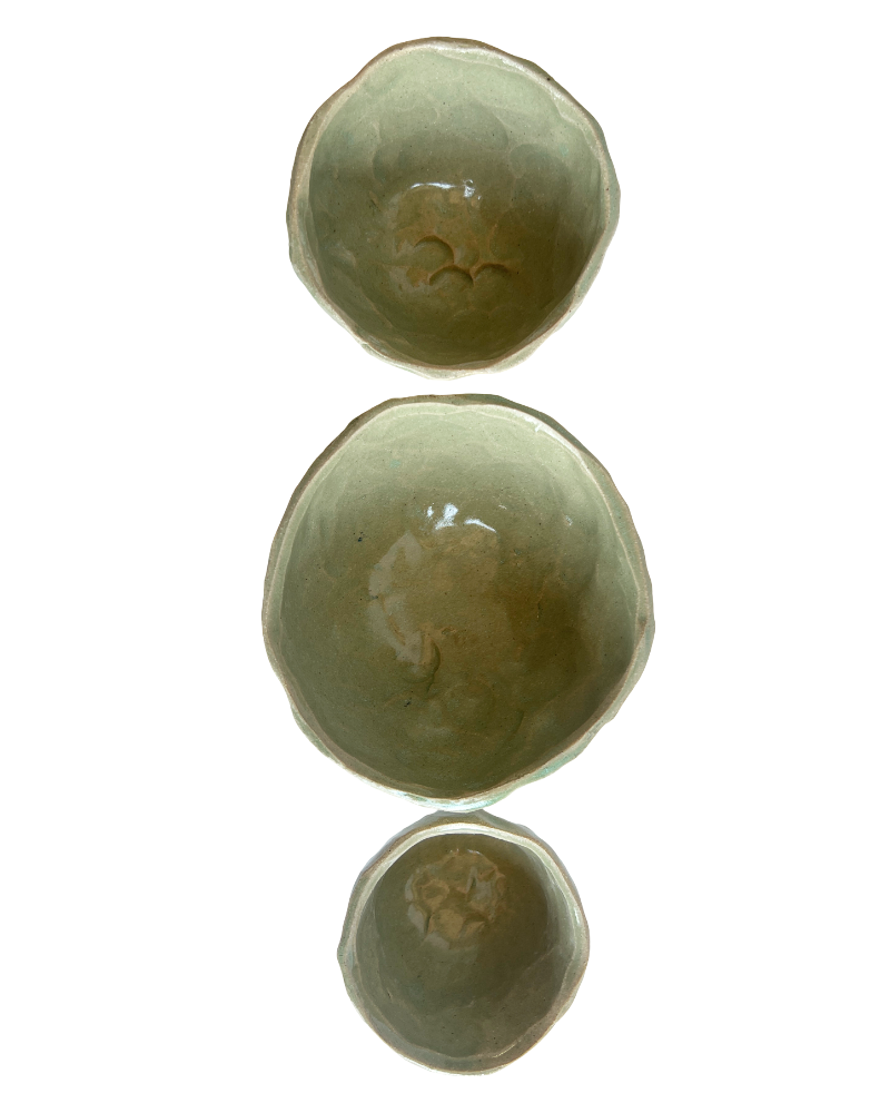 This item is for the home cooks in your life. They also make great hostess gifts. These bowls are the perfect bowls for prep work, spices, sauces, dressings or dips. They were hand pinched then finished on the potter's wheel. Each one is made from gray stoneware clay and then finished in a soft green glaze. Safe for the microwave or dishwasher.